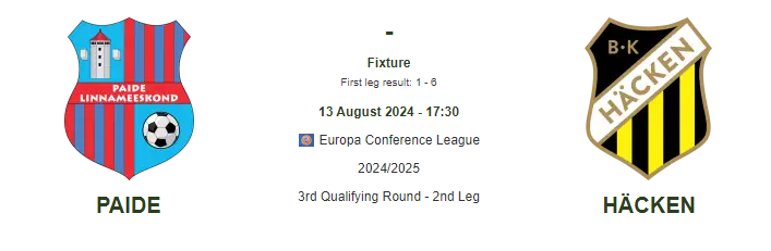 The match between Paide (Estonia) and Häcken (Sweden) in the third qualifying round of the UEFA Conference League promises to be interesting. Häcken won the first leg 6-1, giving them a comfortable advantage for the second leg.